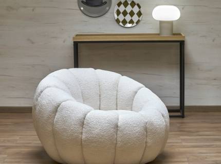 Fotoliu cozy cu design curbat GASPAR material textil crem 90x95xH60cm
