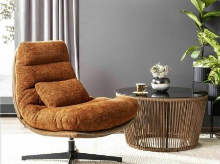 Confortabil și funcțional, Fotoliul rotativ LEXI, echipat cu sistem rotativ și arcuri sinusoidale, oferă relaxare optimă și un design modern, ideal pentru interioare contemporane.