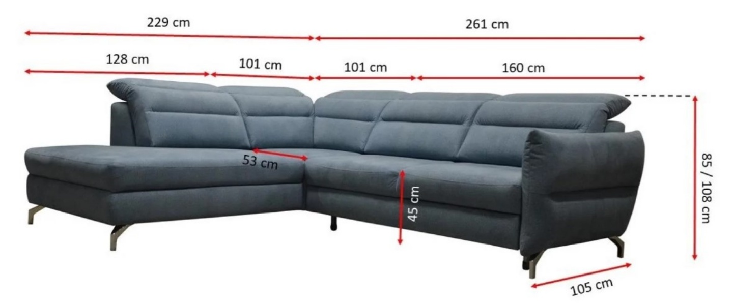 Coltar extensibil ALESSIO cu lada pentru depozitare, tetiere reglabile, personalizabil 250x190cm