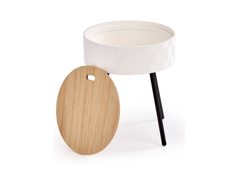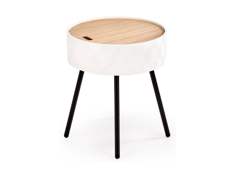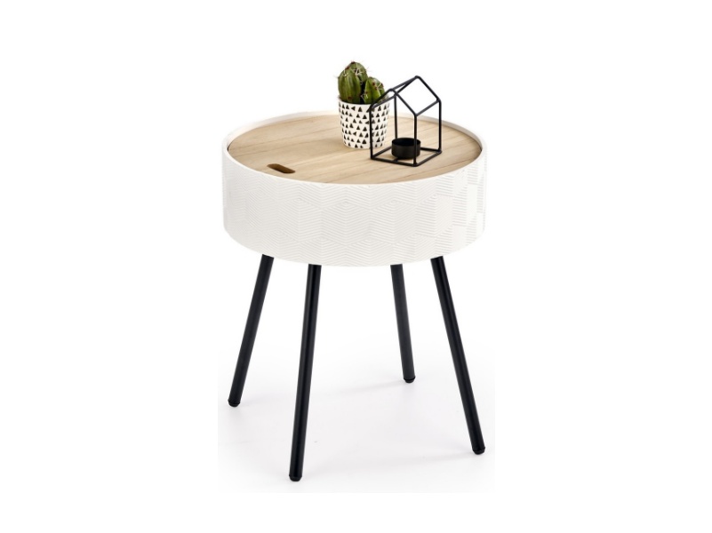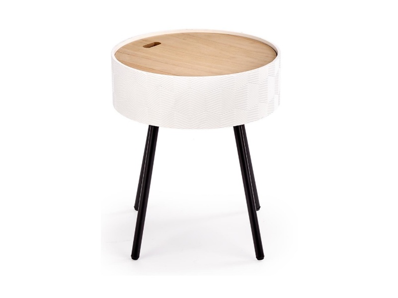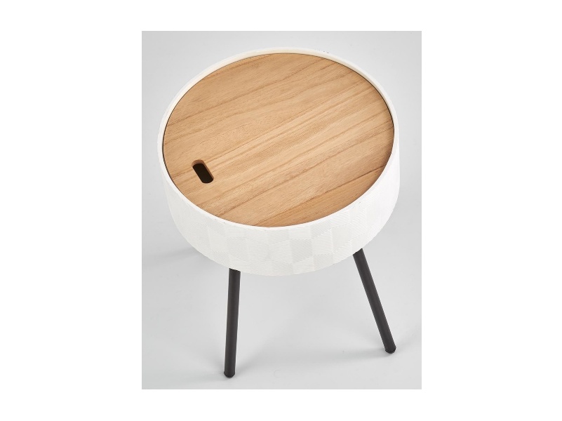 Masuta AURA cu spatiu pentru depozitare, din MDF nuanta lemnului, metal alb / negru 38xH45cm