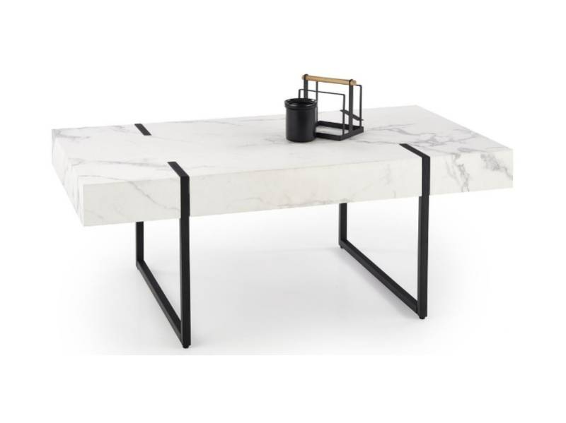 Masuta BLANCA din MDF furniruit cu efect de marmura alba, metal negru 110x60xH43cm