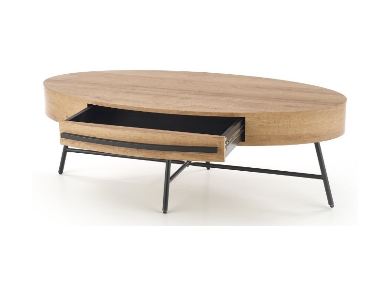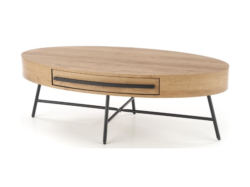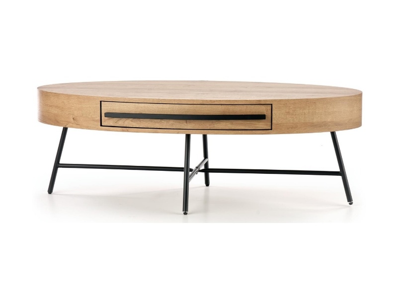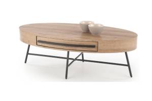 Masuta CAROLINA cu sertar pentru depozitare, din MDF furniruit nuanta lemnului, metal negru 120x60xH41cm
