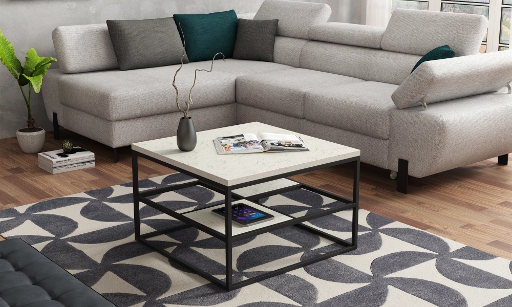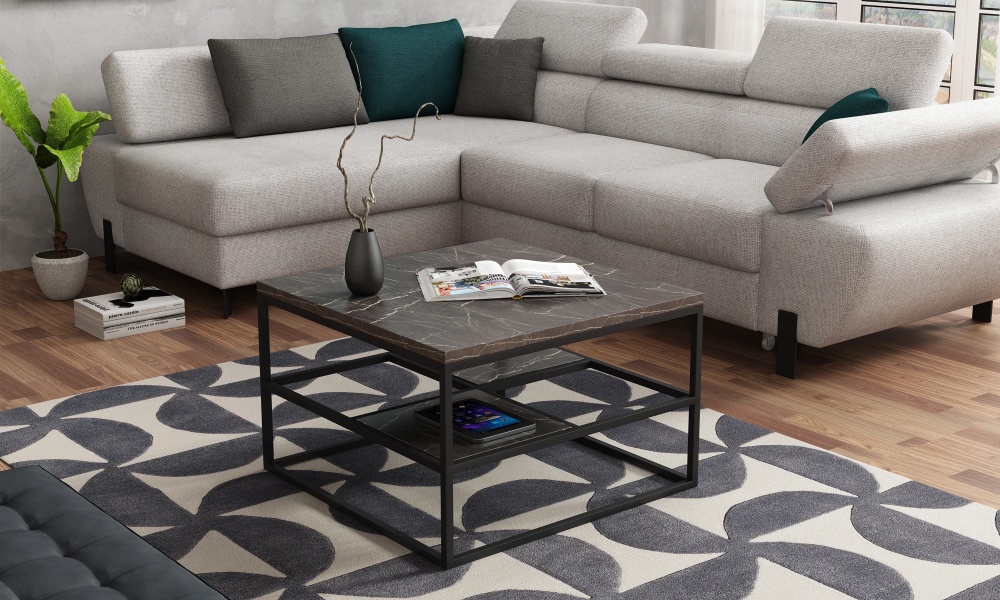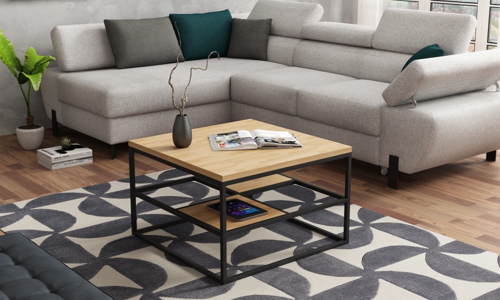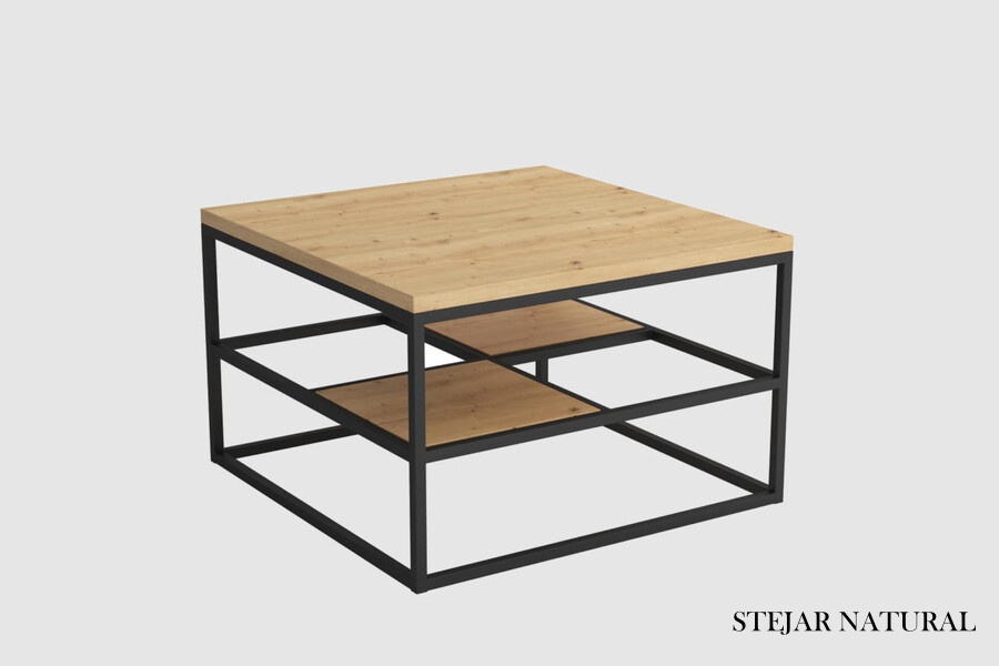 Masuta CORYS cu spatiu tip suport, din PAL Egger, metal negru 70x70xH45cm