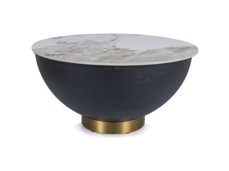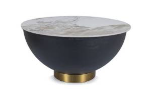 Masuta CYPRUS A din ceramica cu efect de marmura alba, metal negru + auriu 73xH37cm