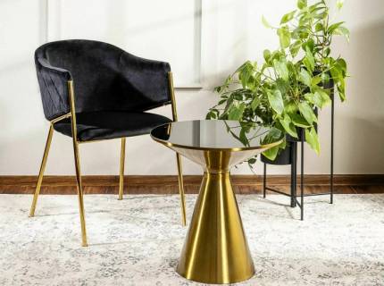 Masuta DUCAT cu spatiu tip suport, din sticla transparenta, sticla cu efect de marmura alba, metal auriu 100x50xH51cm