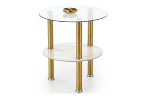 Masuta DUCAT S din sticla transparenta, sticla cu efect de marmura alba, metal auriu 45xH49cm