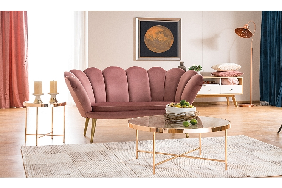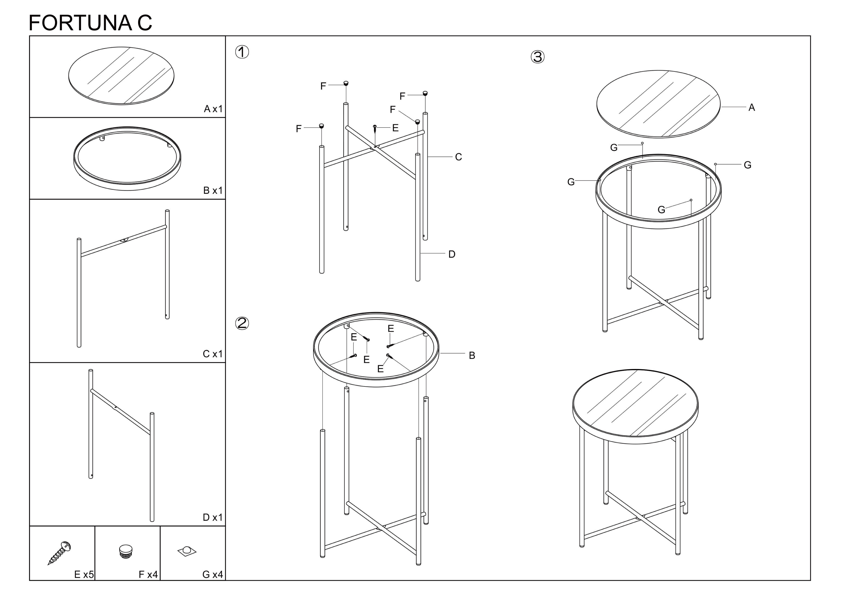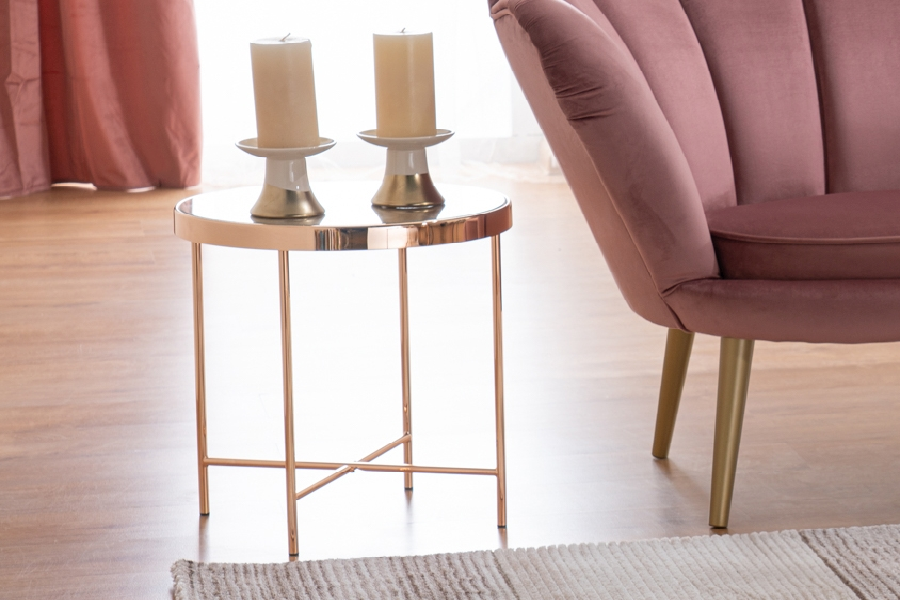 Masuta FORTUNA C din sticla cu efect de marmura, metal auriu 43xH46cm