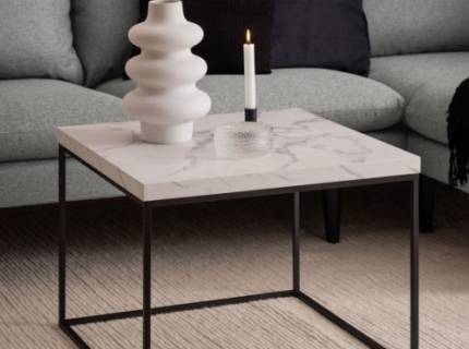 Masuta BAREA din PAL Egger cu efect de marmura alba, metal negru 60x60xH45cm