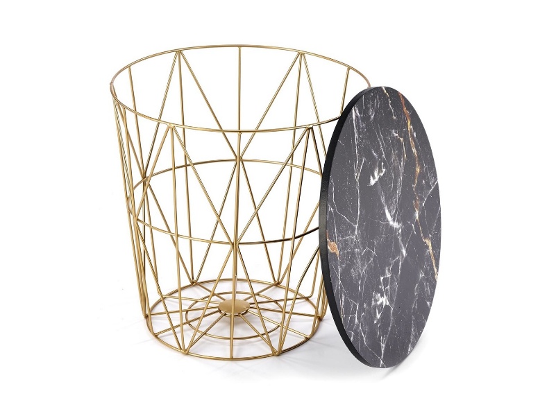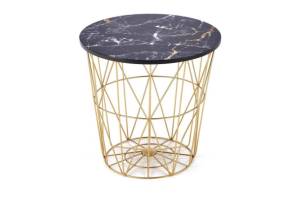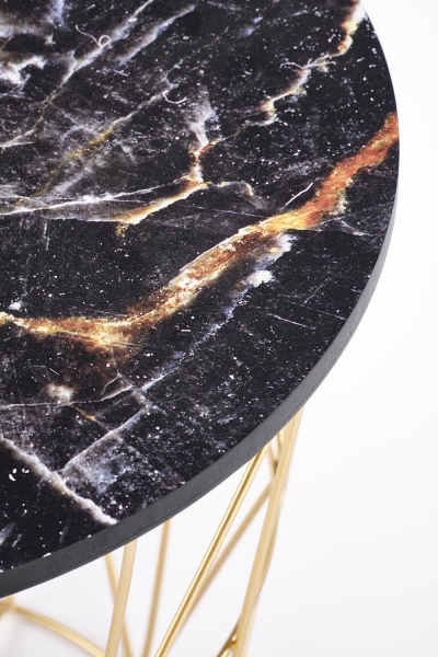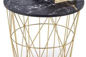 Masuta HARISSA G BLACK cu spatiu pentru depozitare vizibil, din MDF furniruit cu efect de marmura neagra, metal auriu 42xH41cm