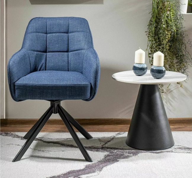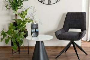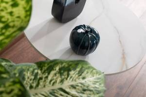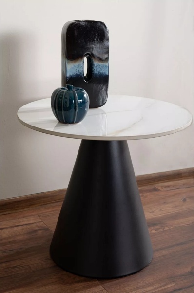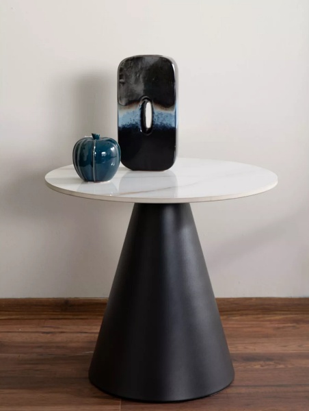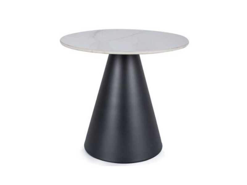 Masuta HILL din ceramica cu efect de marmuca alb lucios, metal negru 50xH46cm