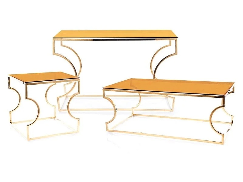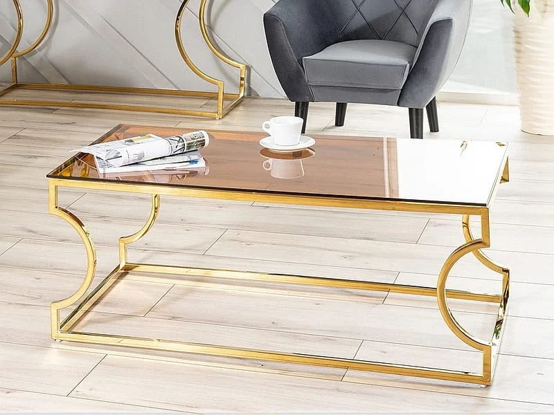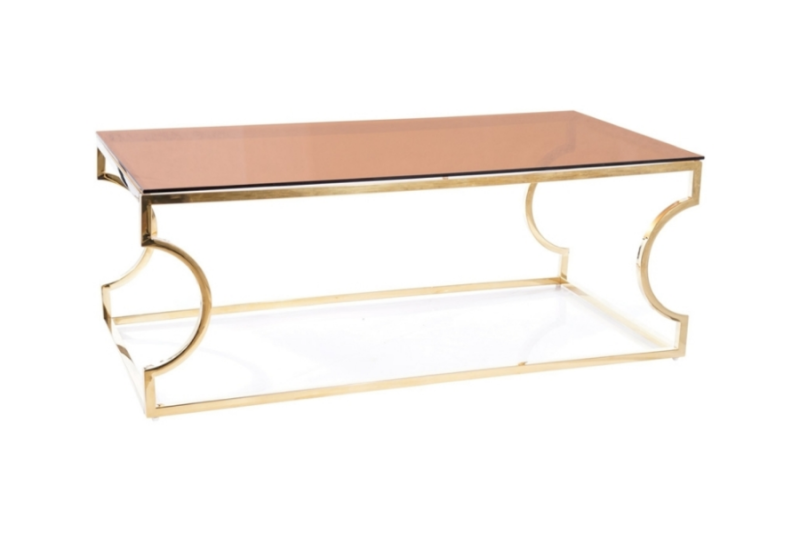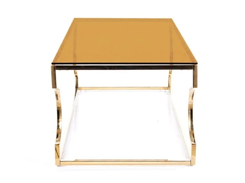 Masuta KENZO A din sticla securizata chihlimbar, metal auriu 120x60xH40cm