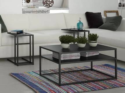 Masuta LETINO cu spatiu tip suport, PAL Egger, metal negru 100x60xH46cm