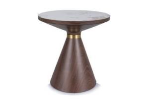 Masuta NAPA B din ceramica cu efect de marmura alb lucios, lemn maro, metal auriu 50xH53cm