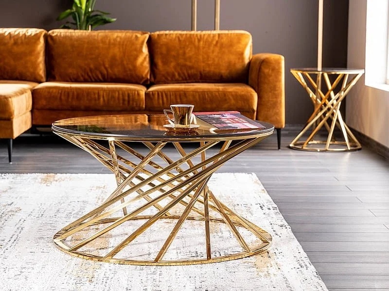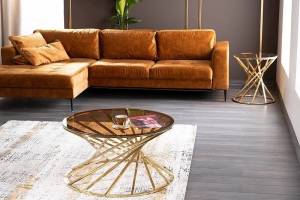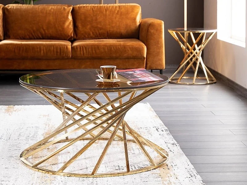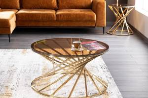 Masuta OTTAVIA A din sticla securizata chihilimbar, metal auriu 80xH43cm