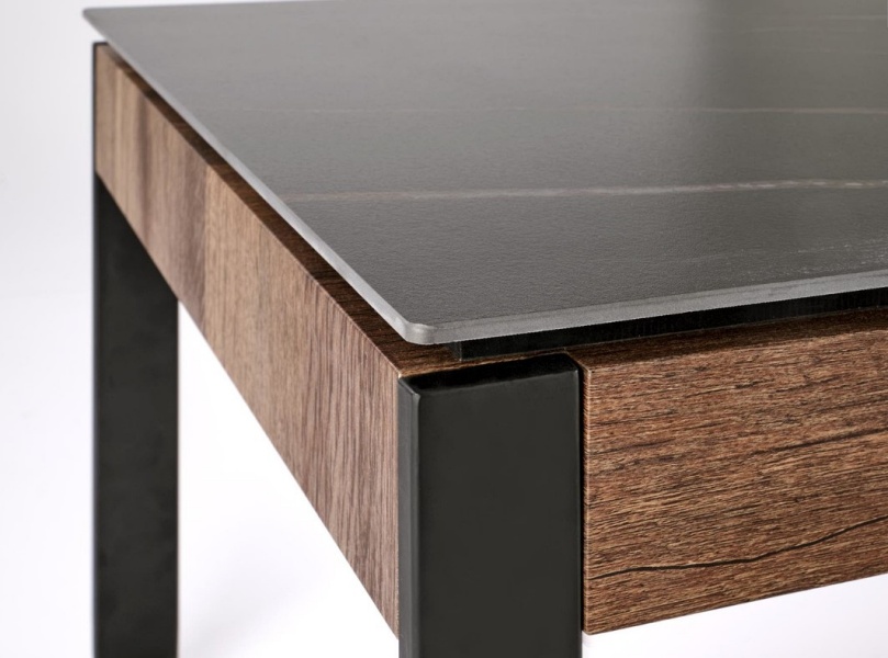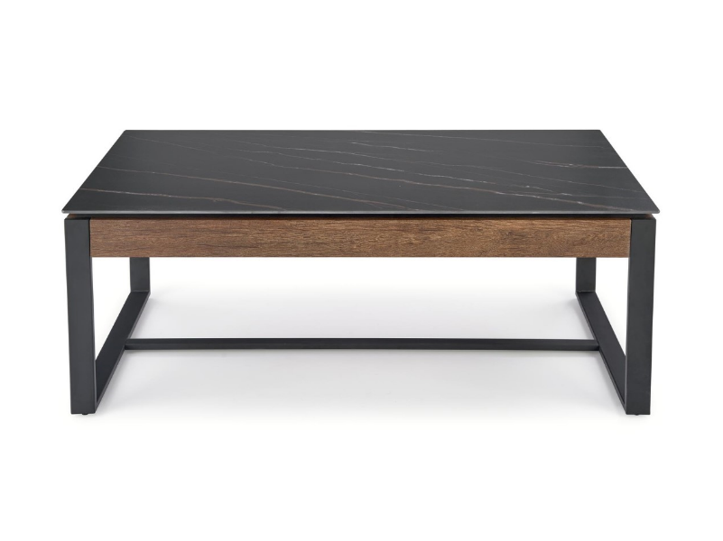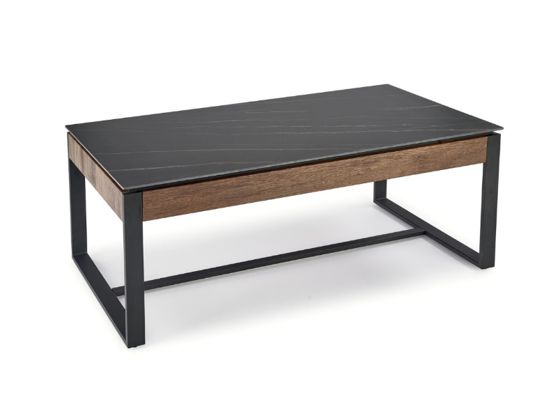 Masuta RAMONA din MDF furniruit si sticla termorezistenta cu efect de marmura neagra, metal negru 121x61xH45cm