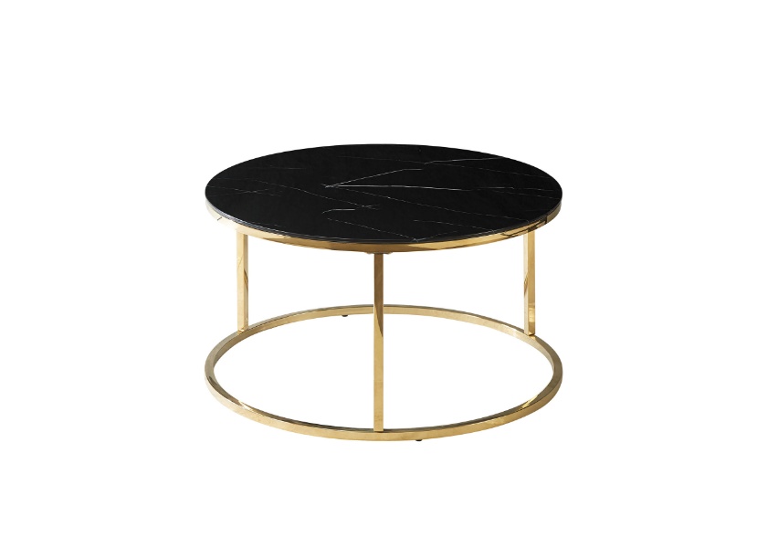 Masuta SABINE BLACK din sticla cu efect de marmura neagra, metal auriu 80xH45cm