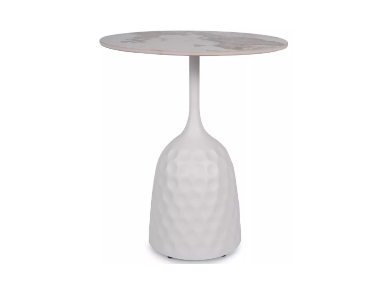 Masuta SALO A din ceramica cu efect de marmura alb lucios, metal alb mat 50xH60cm