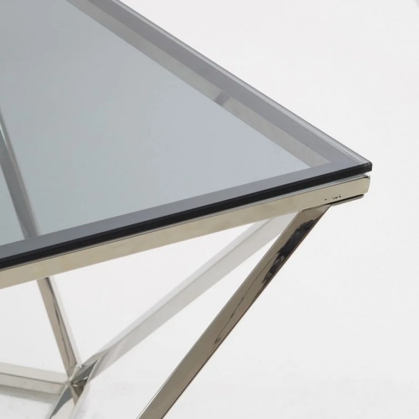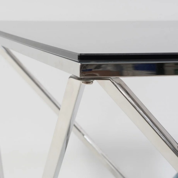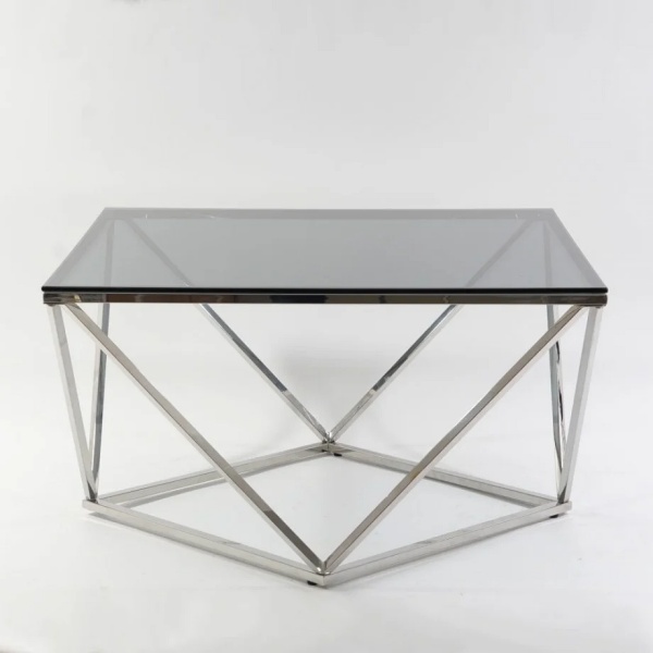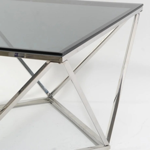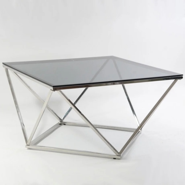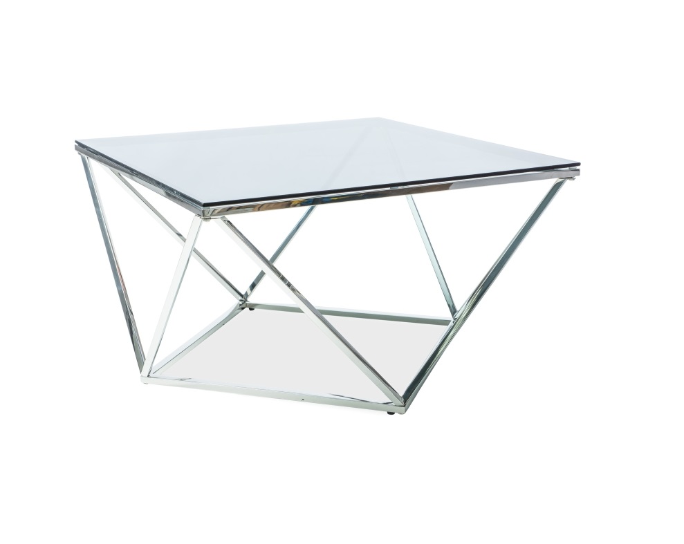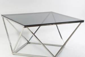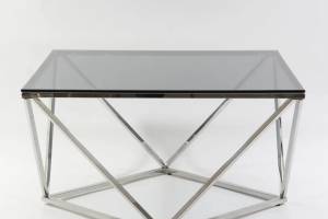 Masuta SILVER A din sticla securizata termorezistenta fumurie, metal crom 80x80xH45cm