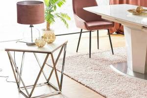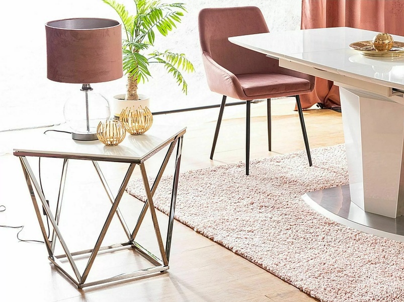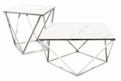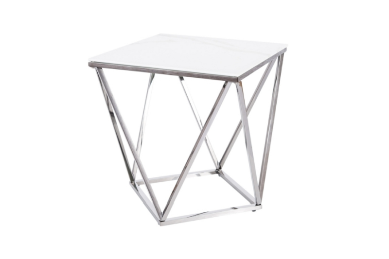 Masuta SILVER B II din sticla cu efect de marmura alba, metal crom 50x50xH53cm