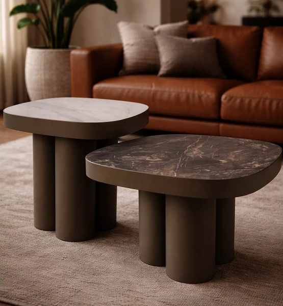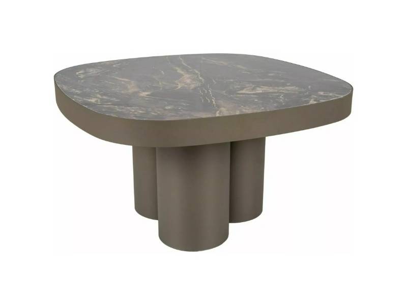 Masuta STELLA B din ceramica Spaniola Vulcano negru lucios, metal cupru 75x75xH43cm