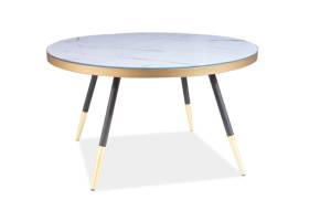 Masuta VEGA B din sticla cu efect de marmura alba, furnir, metal auriu + negru 80xH45cm