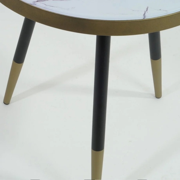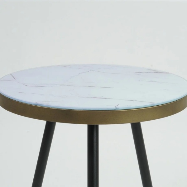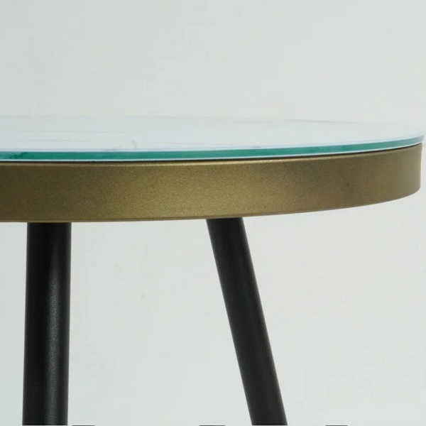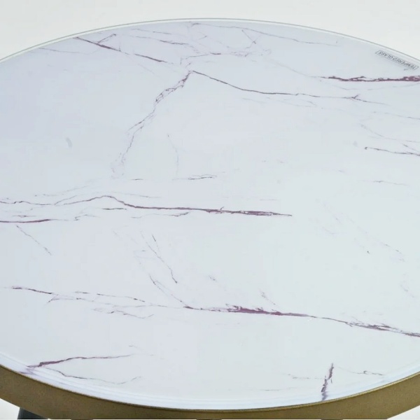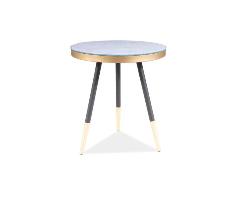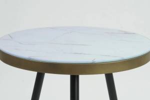 Masuta VEGA C din sticla cu efect de marmura alba, furnir, metal auriu + negru 45xH50cm