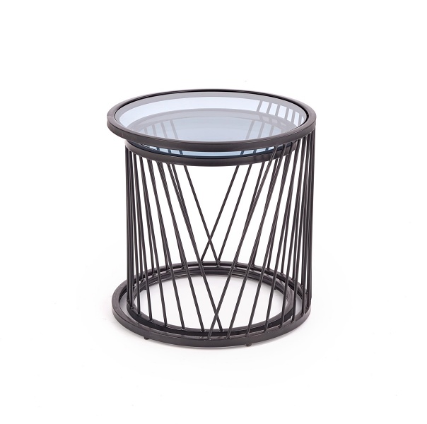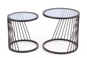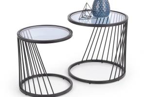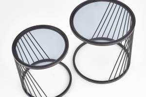 Set 2 masute ANTILLA din sticla transparenta, metal negru 50xH50cm / 42xH45cm