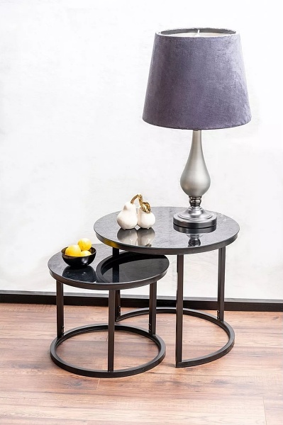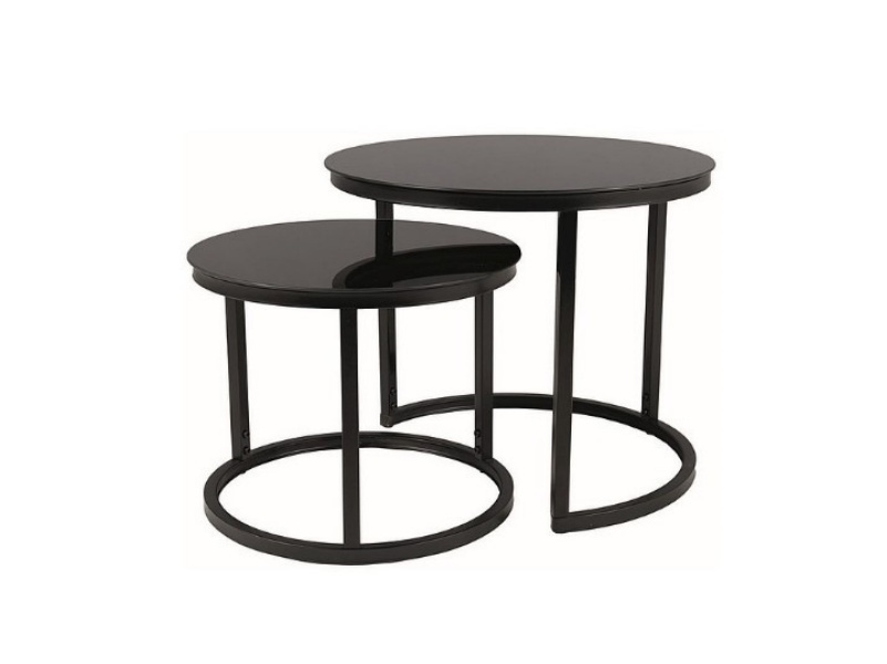Set 2 masute ATLANTA D II din sticla neagra, metal negru 53xH45cm / 43xH35cm