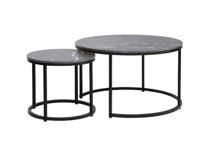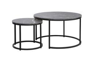Set 2 masute DION BLACK din PAL cu efect de marmura neagra, metal negru 80xH48cm / 48xH42cm
