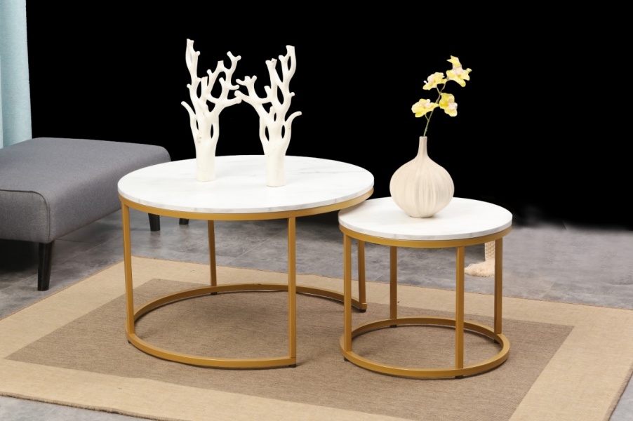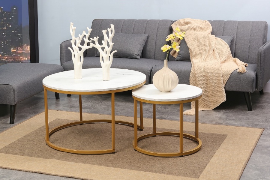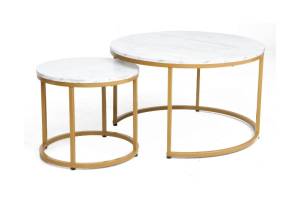 Set 2 masute DION WHITE/ GOLD din PAL cu efect de marmura alba, metal auriu 80xH48cm / 48xH42cm