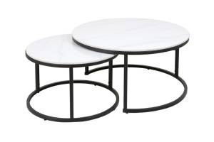 Set 2 masute FERRANTE C din ceramica cu efect de marmura alba, metal negru 60xH38cm / 80xH42cm