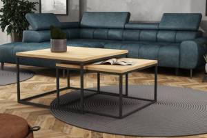 Set 2 masute GINO din PAL Egger, metal negru 66x66xH40cm / 76x76xH47cm
