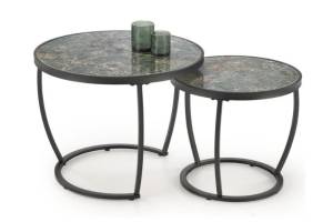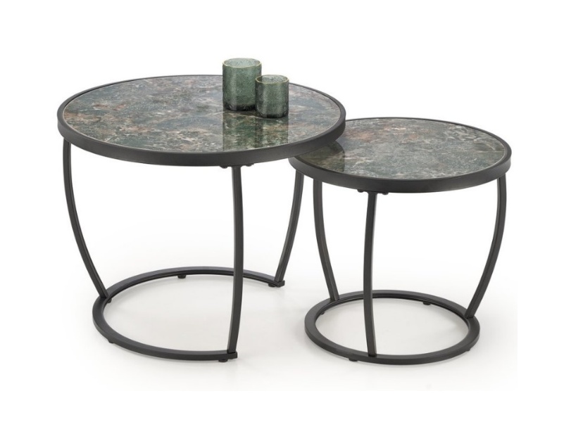 Set 2 masute INES GREEN din otel sinterizat cu efect de marmura verde, metal negru 50xH43cm / 62xH47cm