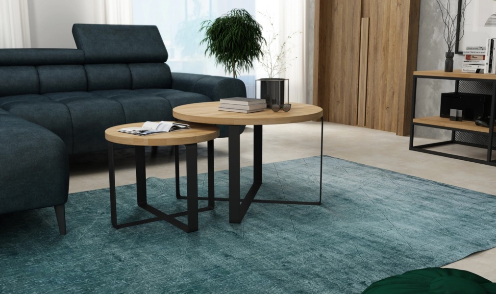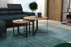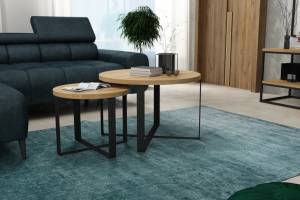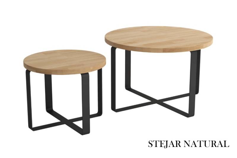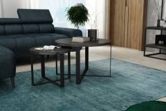 Set 2 masute KODO din PAL Egger, metal negru 41x41xH34cm / 60x60xH39cm