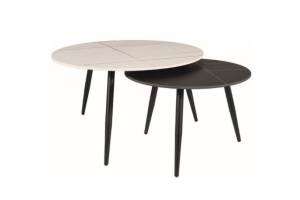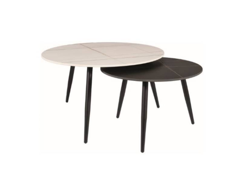 Set 2 masute KORA B din ceramica cu efect de marmura alba, efect de marmura neagra, metal negru 60xH40cm / 80xH45cm
