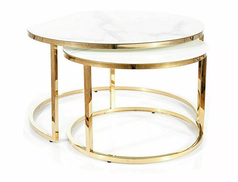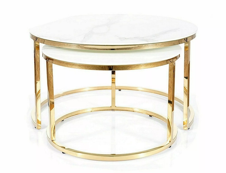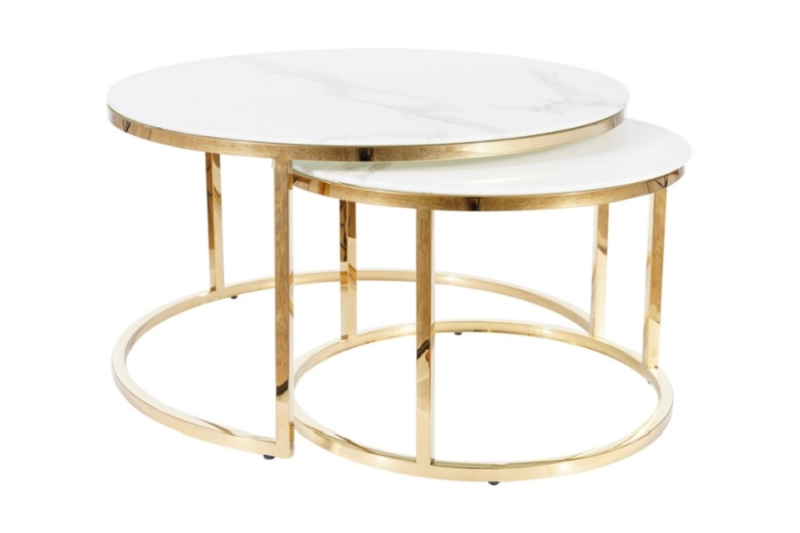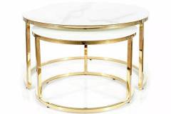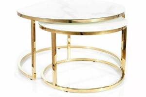 Set 2 masute MUSE din sticla securizata cu efect de marmura alba, metal auriu 60x40cm / 80x45cm