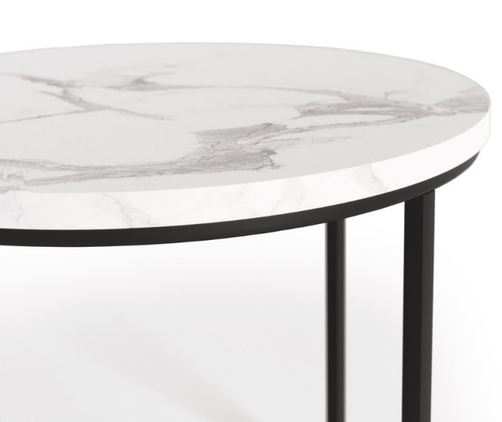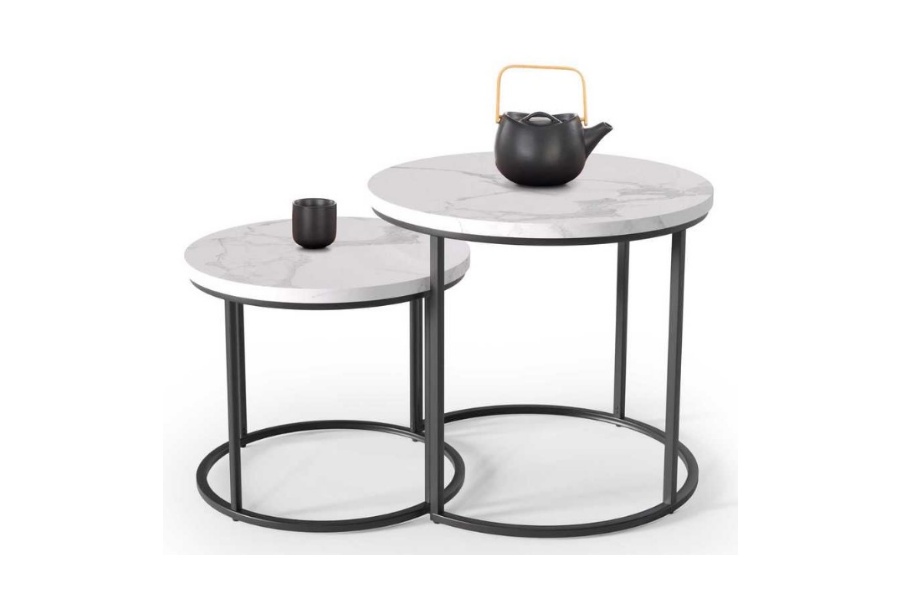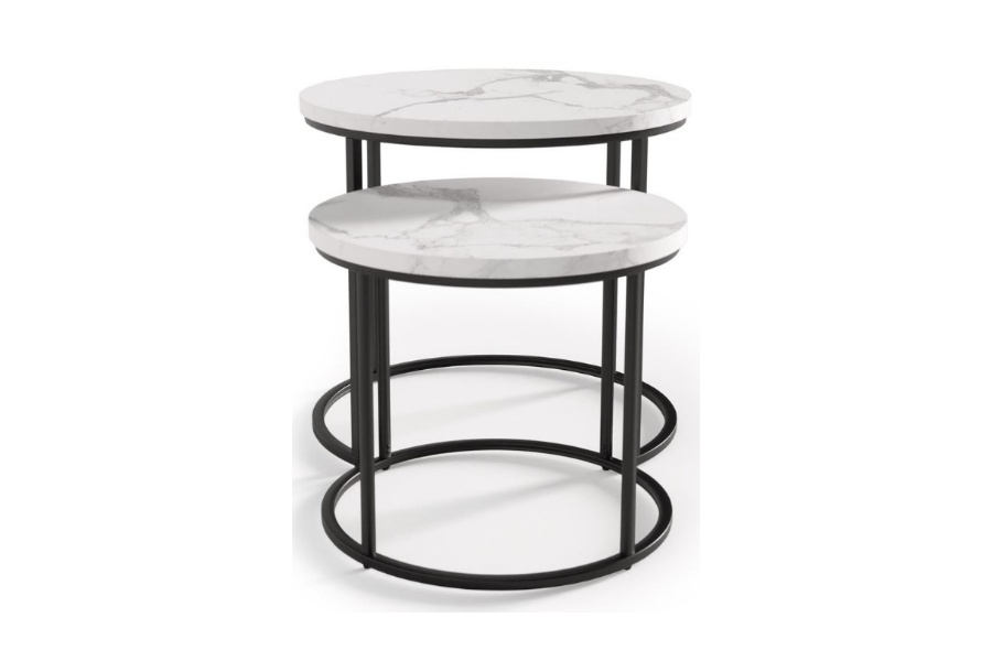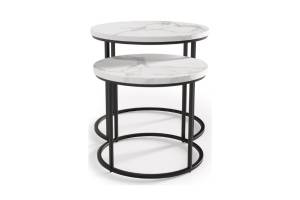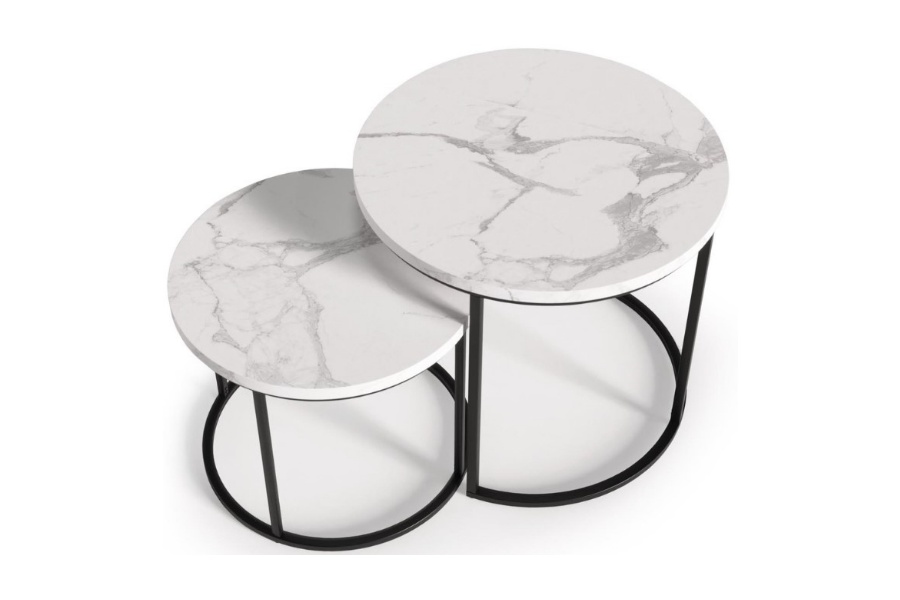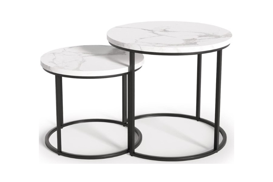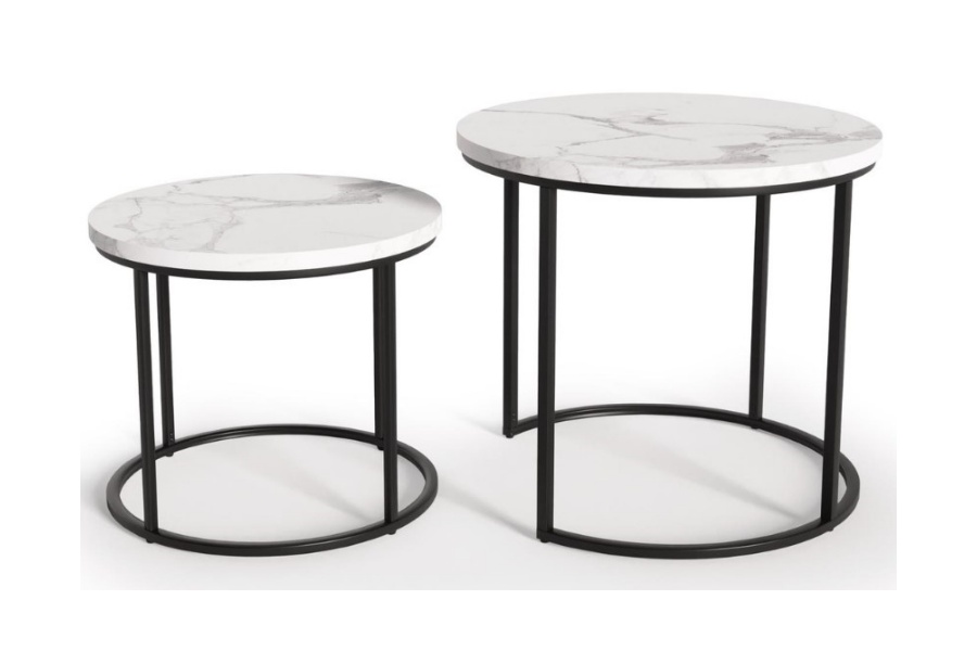 Set 2 masute OREO WHITE din MDF laminat cu efect de marmura alba, metal negru 53xH45cm / 43xH35cm