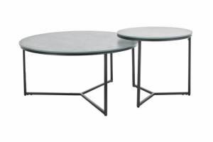 Set 2 masute PALERMO II din sticla securizata cu efect de marmura gri, metal negru 50xH45cm / 80xH40cm
