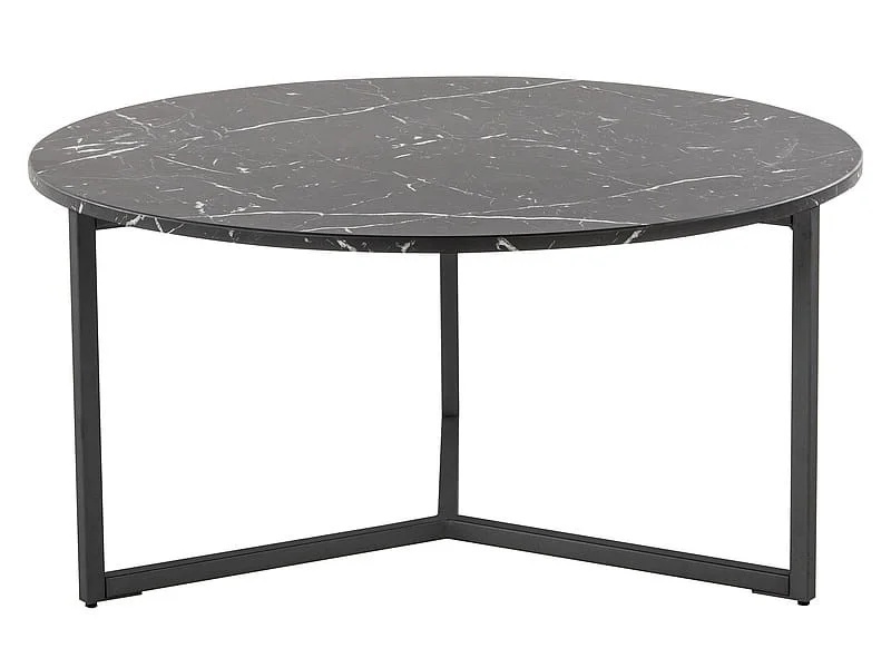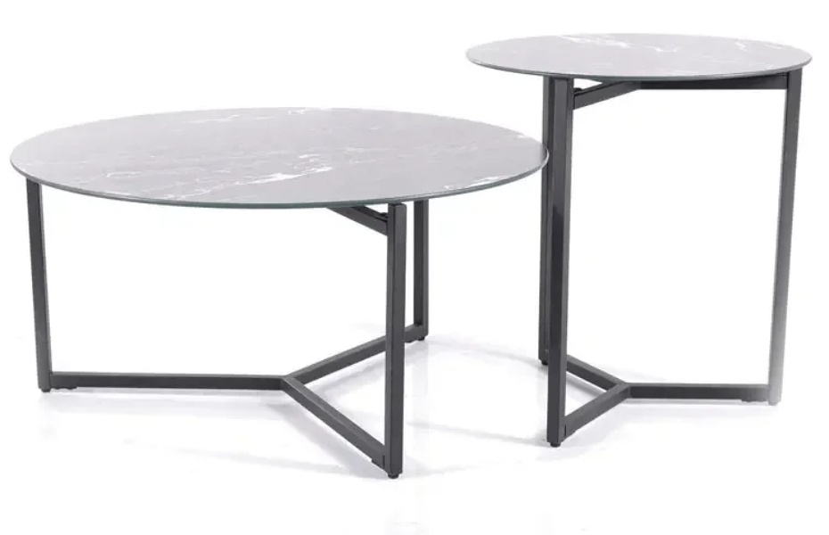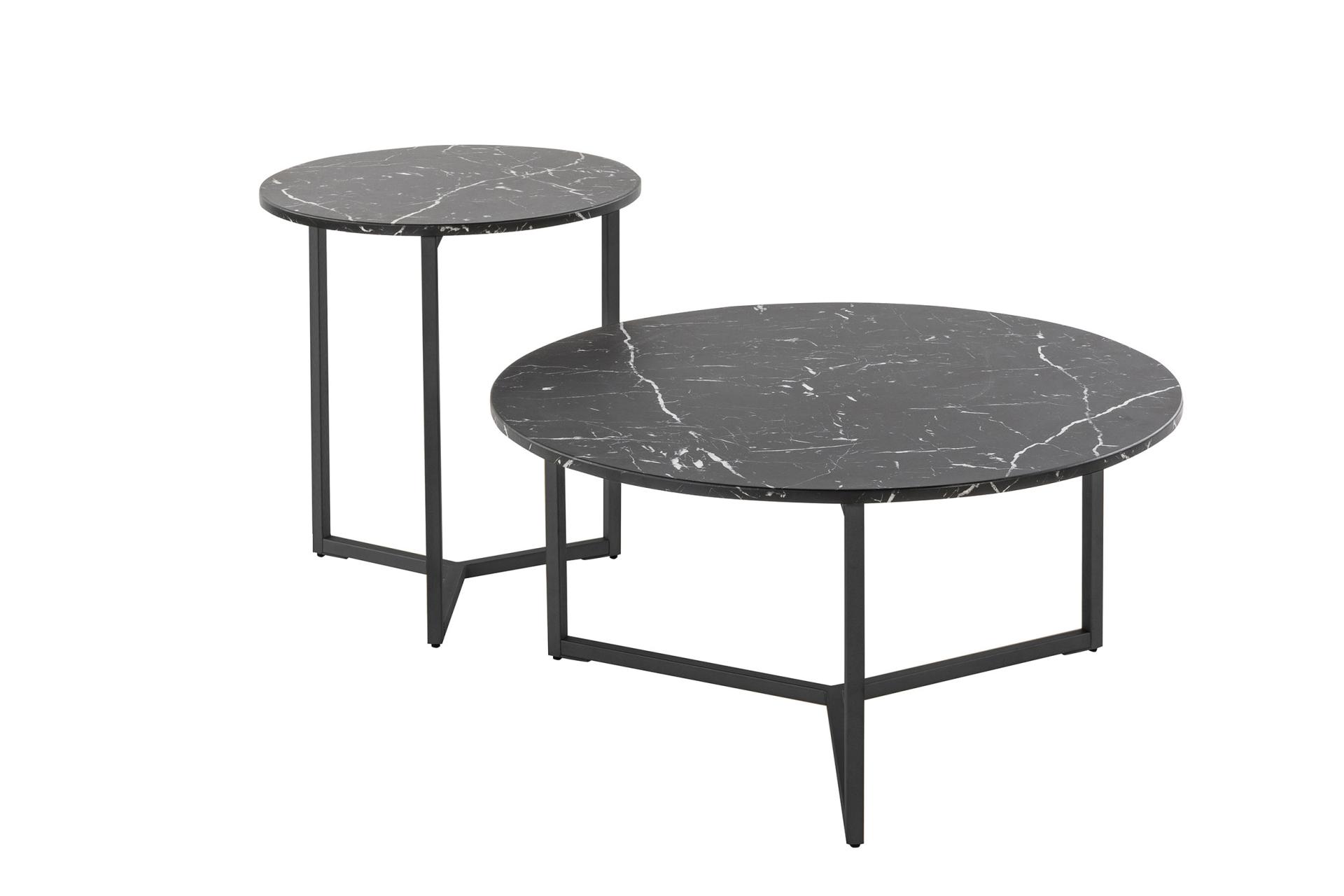 Set 2 masute RAVELLO din sticla cu efect de marmura neagra, metal negru 80xH40cm / 50xH55cm