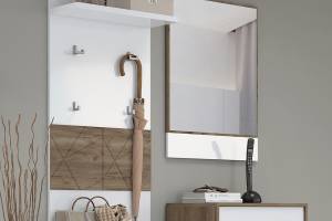 - suportul oglinzii este cu decor stejar Tobacco si alb lucios
