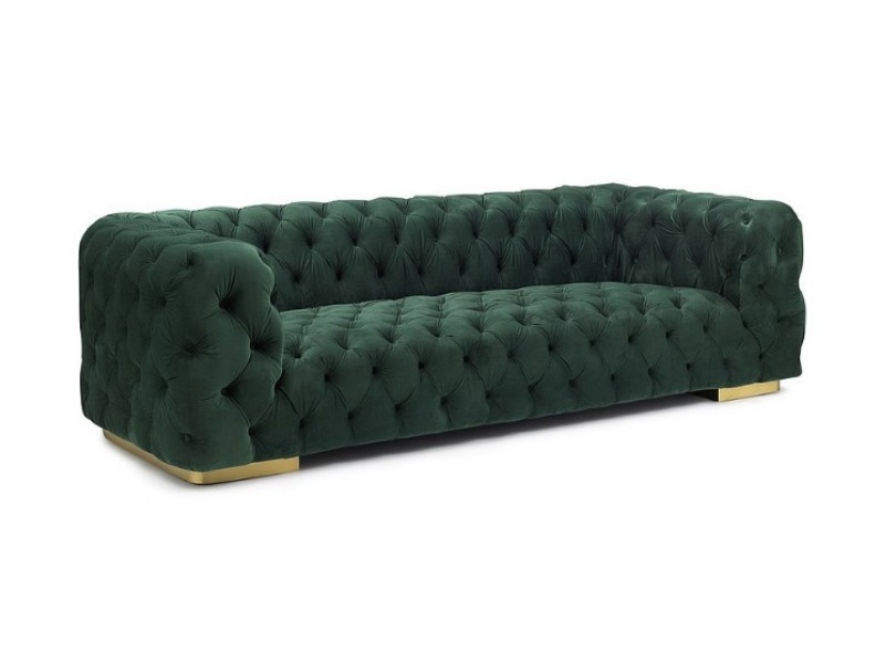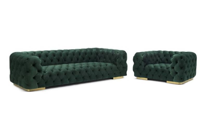 Set canapea 3 locuri + fotoliu CHESTER VELVET fixa, catifea verde 242x97cm / 130x97cm