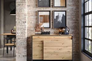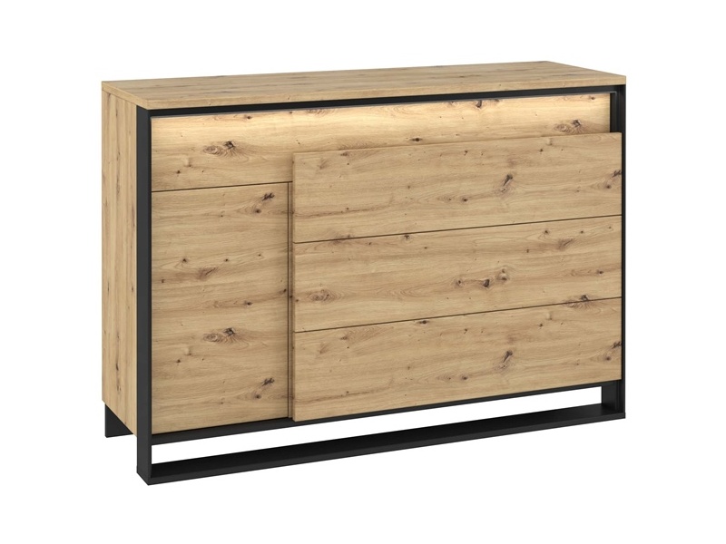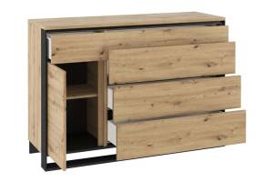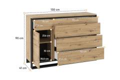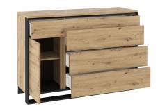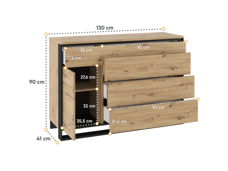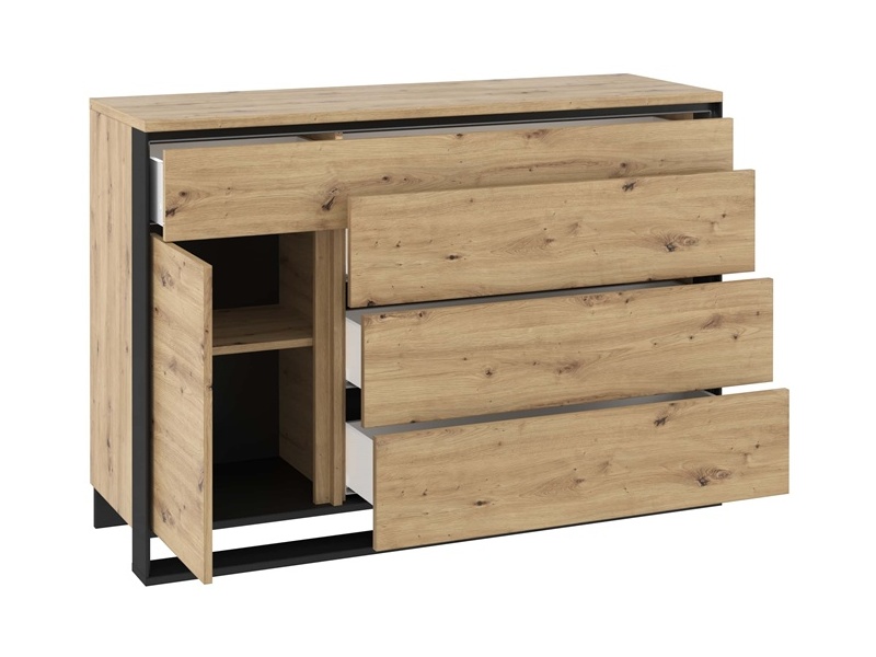 - comoda mare are 4 sertare din care un sertar este mai lung si 1 usa in interiorul careia se afla o polita