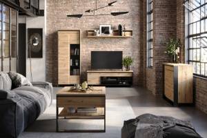 - comoda TV are 2 sertare, 1 usa si o polita neagra cu spatiu deschis