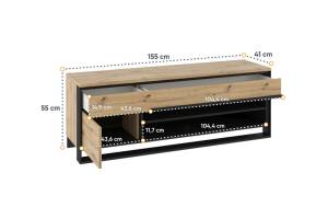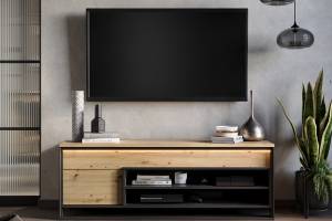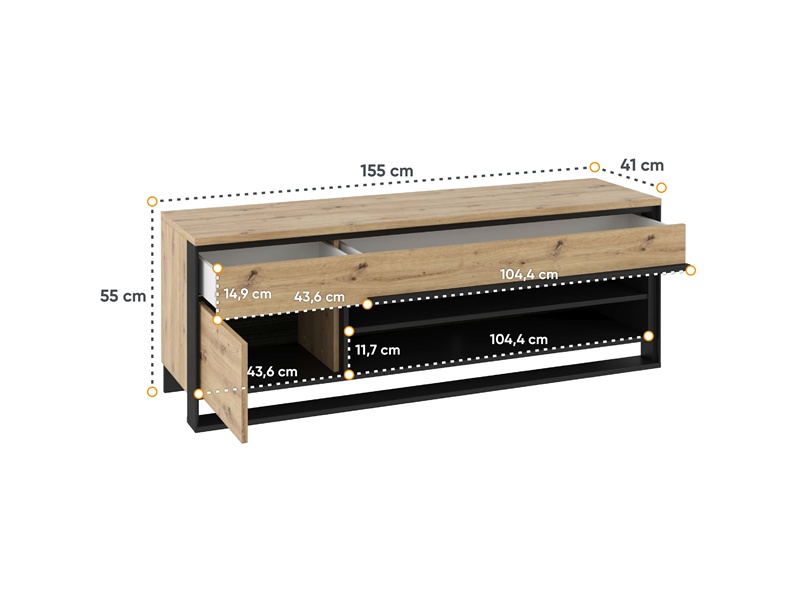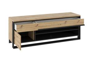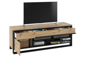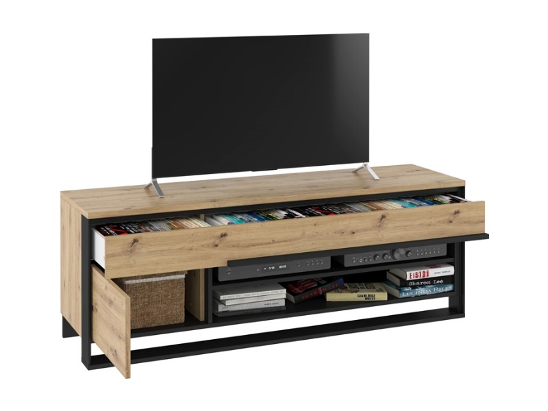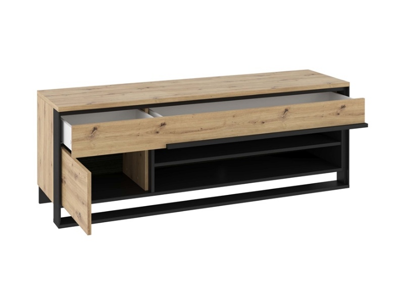 - comoda TV are 2 sertare, 1 usa si o polita neagra cu spatiu deschis