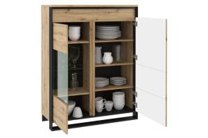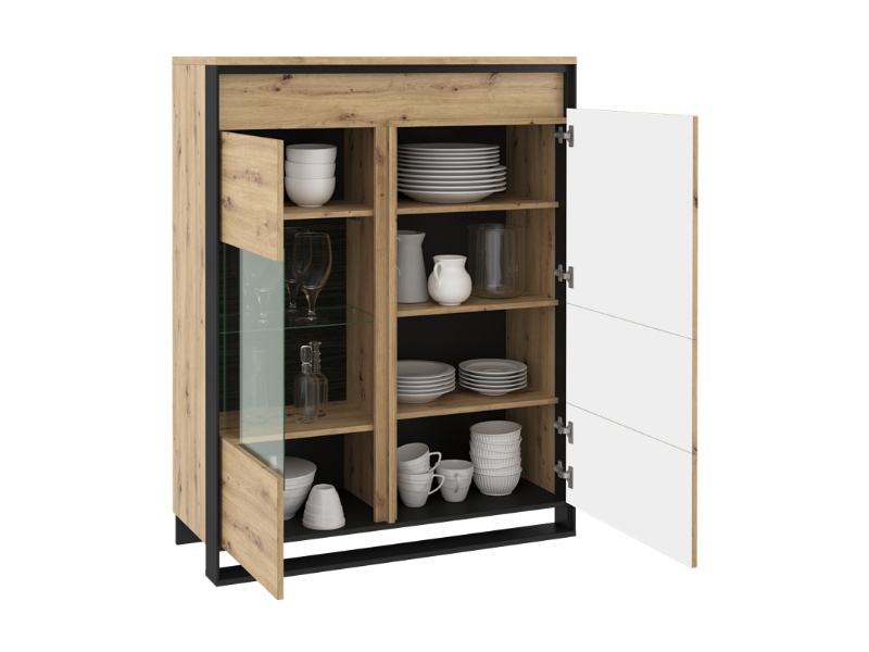 - vitrina inalta are 2 polite din sticla si 6 polite din PAL