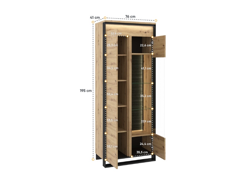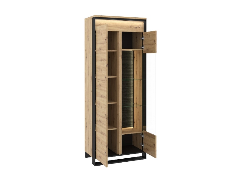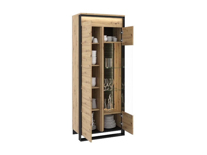 - vitrina inalta are iluminare LED atat in interiorul compartimentului cu sticla cat si in exterior in partea de sus