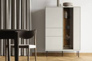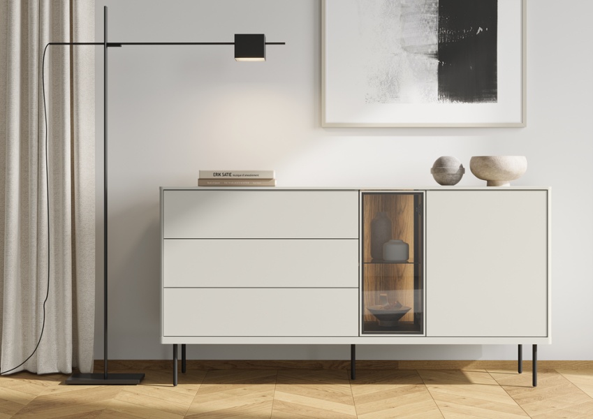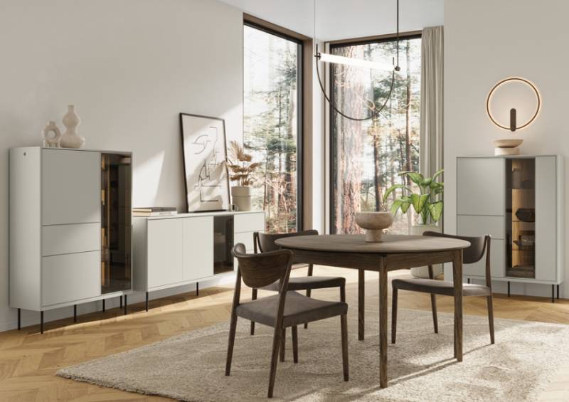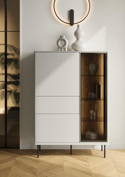 - sistem de iluminare LED in interiorul vitrinelor si comodei (usa cu sticla)