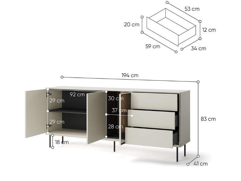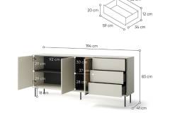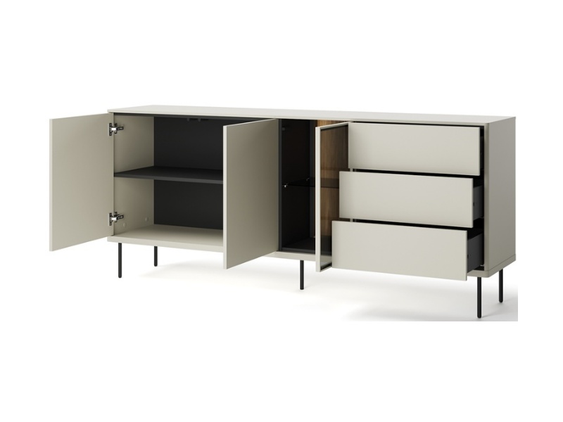 - comoda are 3 usi si 3 sertare pentru depozitare