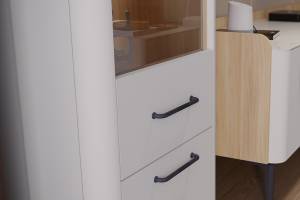 - Usa de la vitrina din partea de sus poate fi montata atat cu deschidere pe partea dreapta cat si cu deschidere pe partea stanga