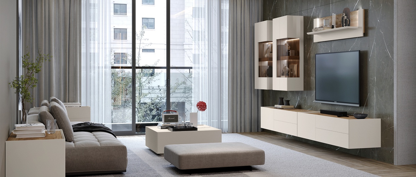Pretul afisat nu include comoda din lateral, masuta, montajul, alte piese de mobilier si accesoriile din imaginea de prezentare a produsului.